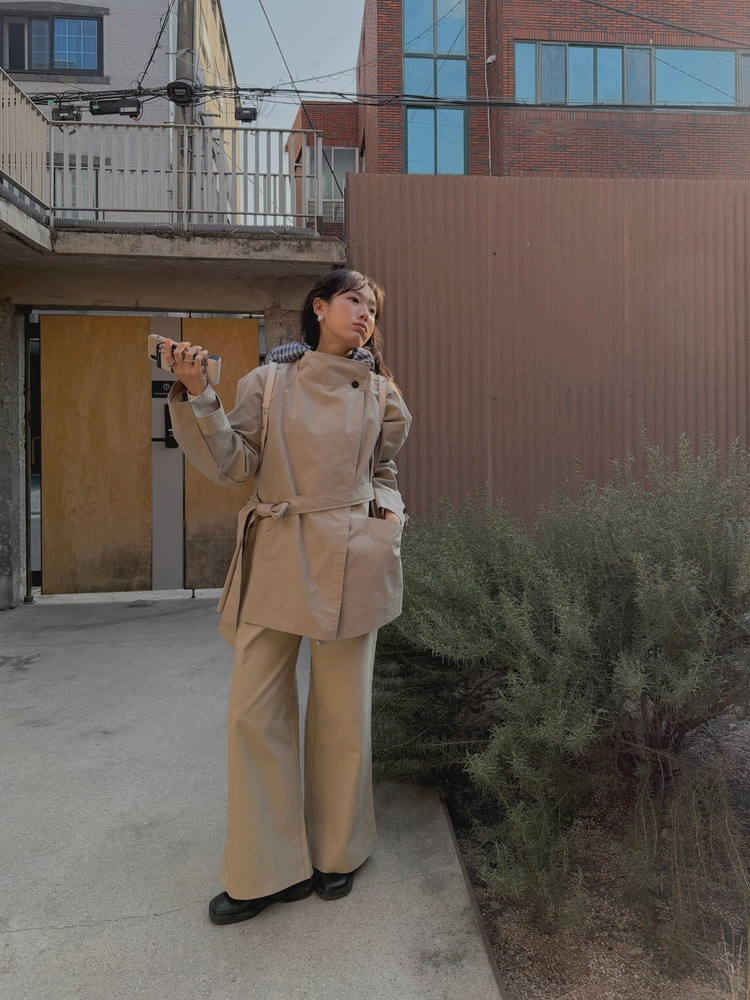 이 트렌치의 킥인 코코아 브라운 컬러는